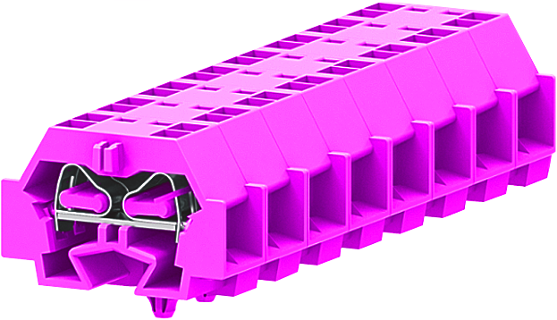 242349, 2-2 проходная клемма с боковым подключением с защёлкивающимися ножками серии 242, розовая